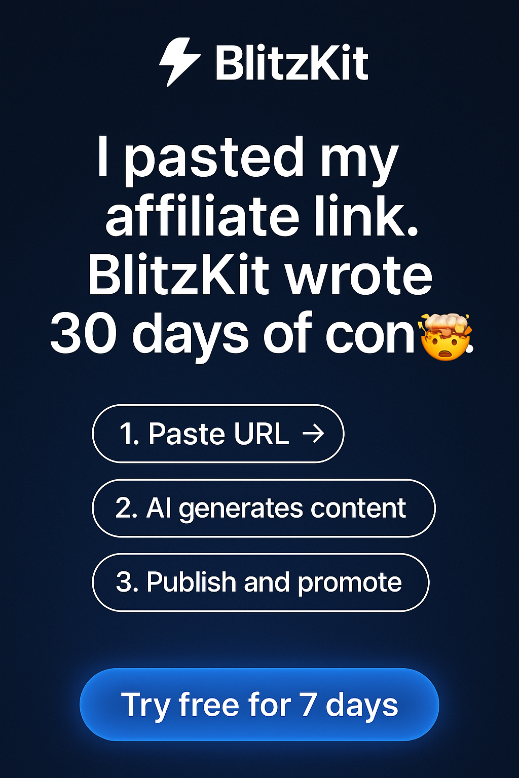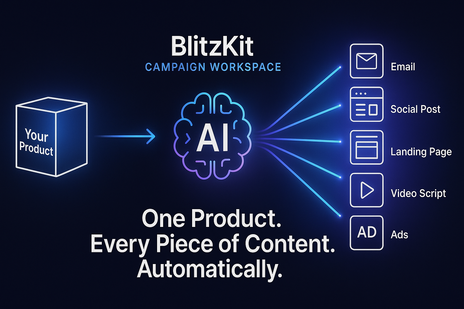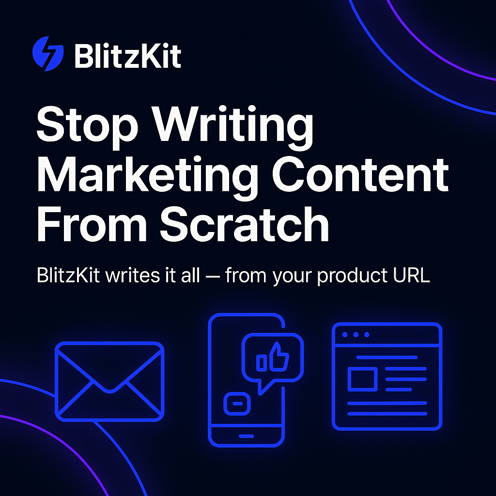 Promote ClickFunnels, digital courses, SaaS tools β BlitzKit writes all the emails, social posts, hooks, and landing pages for any offer in minutes.